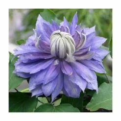 Clematis ‘Crystal Fountain’ also known as ‘Fairy Blue’ is a gorgeous, free flowering, deciduous climber. It initially blooms from late spring to early summer and then again late summer to early autumn. It produces showstopping, large, violet, double flowers with a pronounced ruff of silver-purple stamens in the centre.
