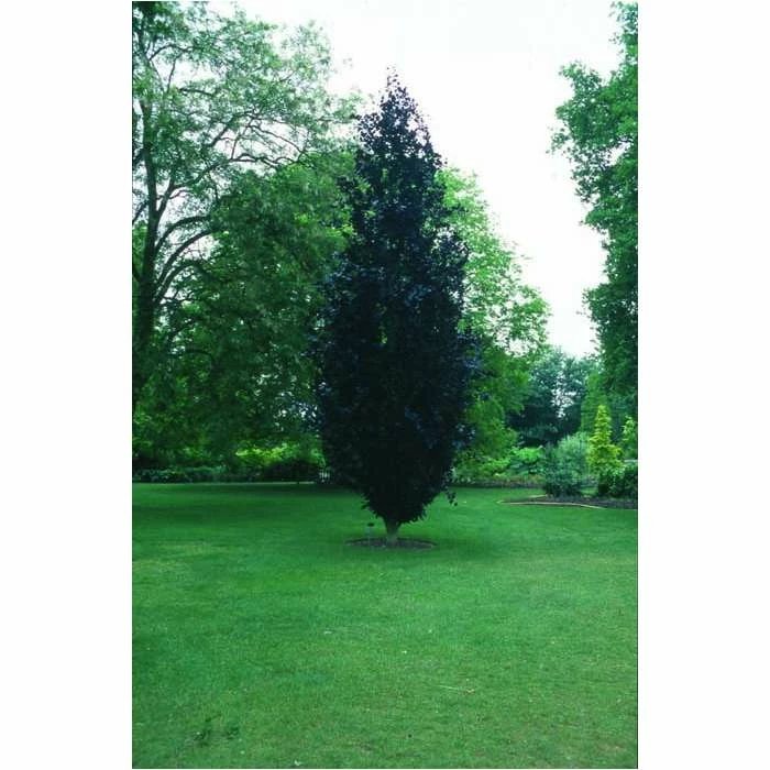 A dark purple leaved fastigiata form that contrasts well with Dawyck Gold.Â
